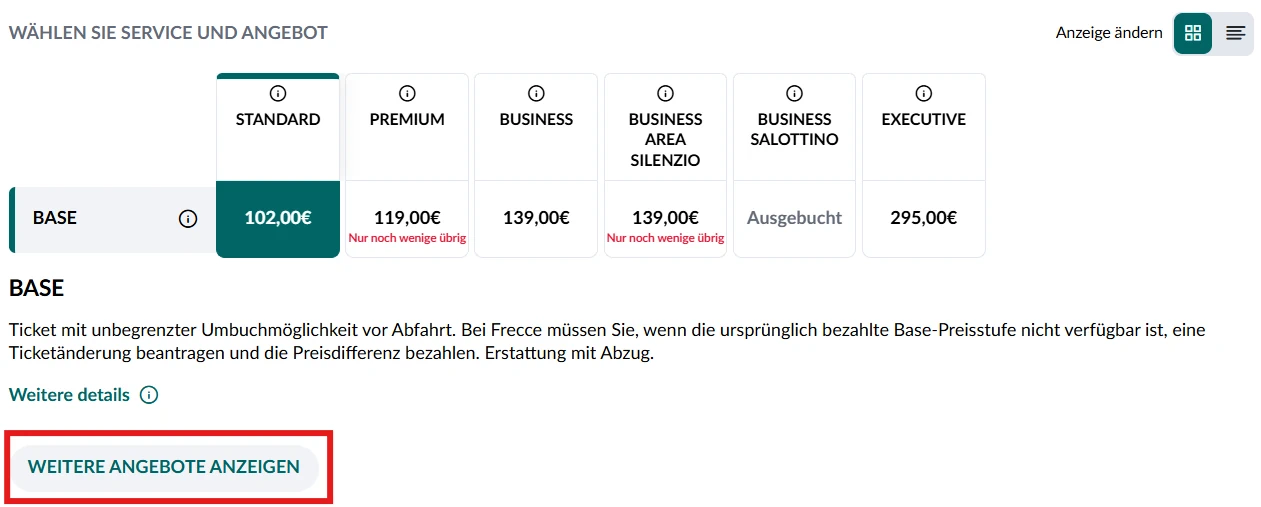 Bei Kurzstrecken im Le Frecce kann der Normaltarif güstiger als FIP reduzierte Tickets sein.